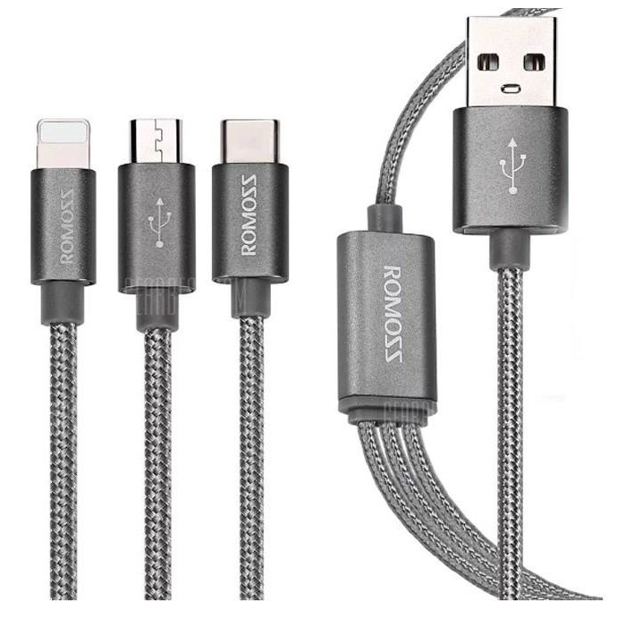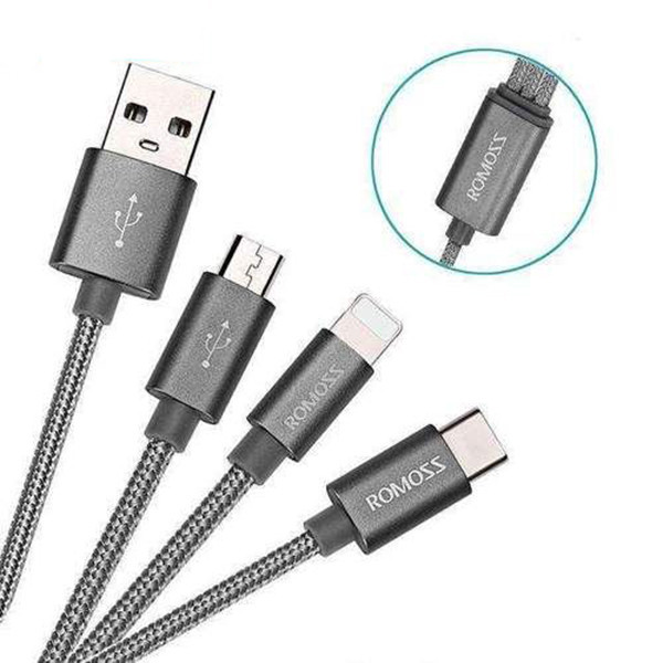 کابل تبدیل USB به microUSB/لایتنینگ/USB-C روموس مدل CB25A طول 1 متر