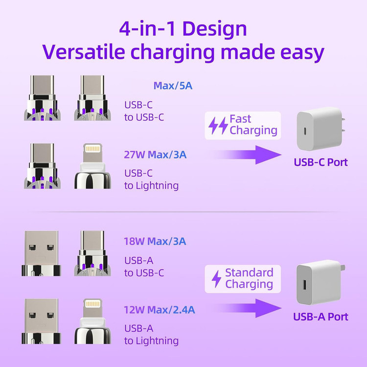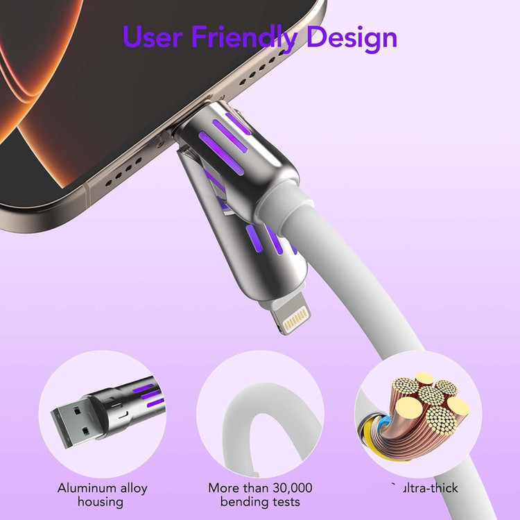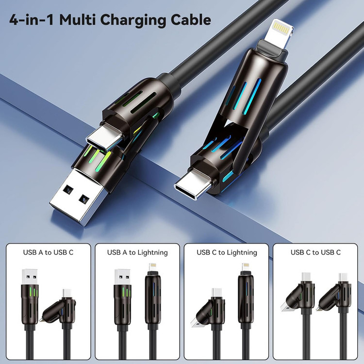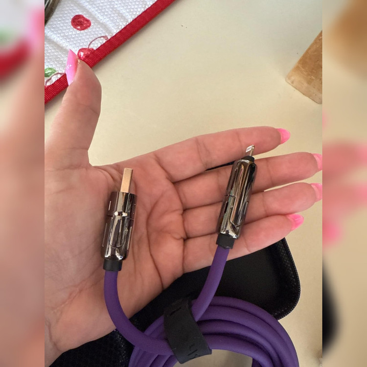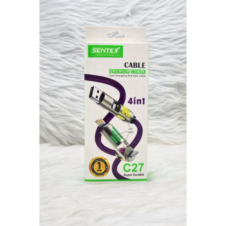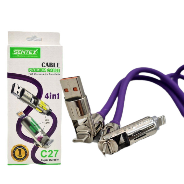 جنس سیلیکونی این کابل علاوه بر زیبایی ، باعث افزایش طول عمر کابل نیز میگردد. روکش نایلونی فشرده کابل مقاومتی استثنایی در برابر خمیدگی، گره خوردگی و سایر آسیبهای احتمالی دارد؛ همین موضوع نیز باعث میشود تا بتوانید با خیالی آسوده کابل را در کیف یا جیب خود حمل کنید و از دوام و طول عمر آن اطمینان داشته باشید. خوشبختانه این محصول قابلیت انتقال اطلاعات میان دو دستگاه را نیز دارد و با حداکثر سرعت ۴۸۰ مگابایت بر ثانیه این کار را برای شما انجام میدهد. کابل SENTEX مدل C27 امکان این را به شما میدهد که گوشی تلفن همراه خود را به راحتی و با سرعت بالا شارژ نمایید. بجای خرید ۴ عدد کابل با قیمت زیاد ، شما میتوانید کابل چهار کاره C27 را به قیمت عالی تهیه نمایید و همیشه همراه خود داشته باشید . کابل C27 از تمامی گوشی های نسل جدید پشتیبانی کرده و با توجه به طراحی منحصر به فرد آن میزان ولتاژ و برق لازم را به گوشی شما انتقال میدهد و از اسیب به باتری گوشیتان جلوگیری مینماید. کابل Sentex مدل C27 دارای ۴ سوکت سوکت یو اس بی به لایتنینگ سوکت یو اس بی به تایپ سی سوکت تایپ سی به تایپ سی سوکت تایپ سی به لایتنینگ سوپر فست شارژ قابلیت دیتا دارای چراغ رنگارنگ جنس کابل سیلیکونی سر سوکت ها فلزی مناسب مسافرت و داخل خودرو