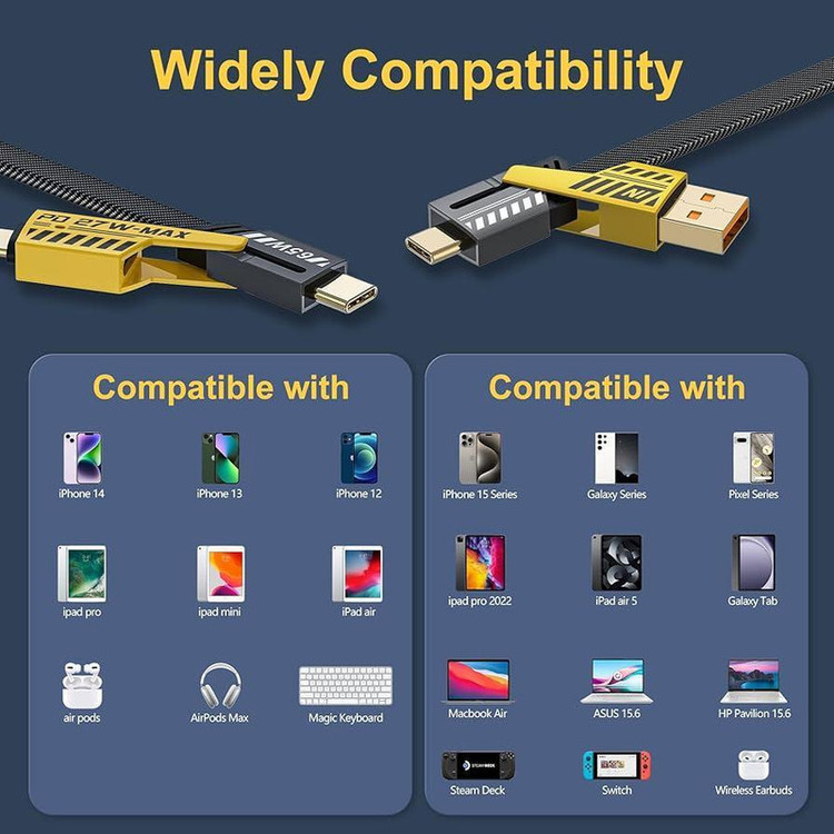 نوهان با کیفیت ترین برند تولید کننده کابل شارژ مجهز به انواع پروتکلهای شارژ سریع SCP, FCP, VOOC, AFC, QC3.0, QC2.0, PD بهرهمندی از قابلیت PD برای کابل، این امکان را برای شما ایجاد میکند تا بتوانید بازه گستردهتری از وسایل را با کابل خود شارژ بنمایید. توان خروجی 65 واتی بالای کانکتورها نیز سبب میشود که بتوانید گوشیهارا با سرعت بسیار بالاتری شارژ کنید. مجهز به تراشه مدیریت هوشمند جهت تشخیص بالاترین ولتاژ، آمپر و بهترین پروتکل شارژ سریع متناسب با نوع گوشی به منظور جلوگیری از هرگونه آسیب احتمالی به باتری دستگاه، ساخته شده با روکش الیافی مقاوم در برابر خمش، پارگی، کشش و گره خوردن با طول عمر زیاد، مجهز به سوکتهای فلزی از جنس آلیاژ آلومینیوم بسیار مقاوم در برابر ضربه، سایش و خوردگی، دارای محافظ سیلیکونی TPE در قسمت انتهایی کانکتورها جهت جلوگیری از آسیب کابل در برابر خمشهای زیاد، دارای گواهینامه ایمنی CE/ RoHs/ FCC، طول کابل 1 متر، مناسب برای گوشی، لپ تاپ، محصولات آیفون و سامسونگ و شیائومی و تمامی دستگاههای دارای درگاه Type-C و Lightning است.